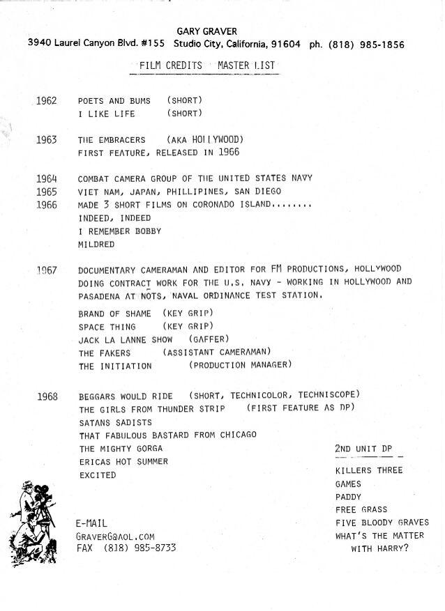 Gary Graver was an American filmmaker whose career spanned five decades.Please enjoy this collection of photos, videos and stories.